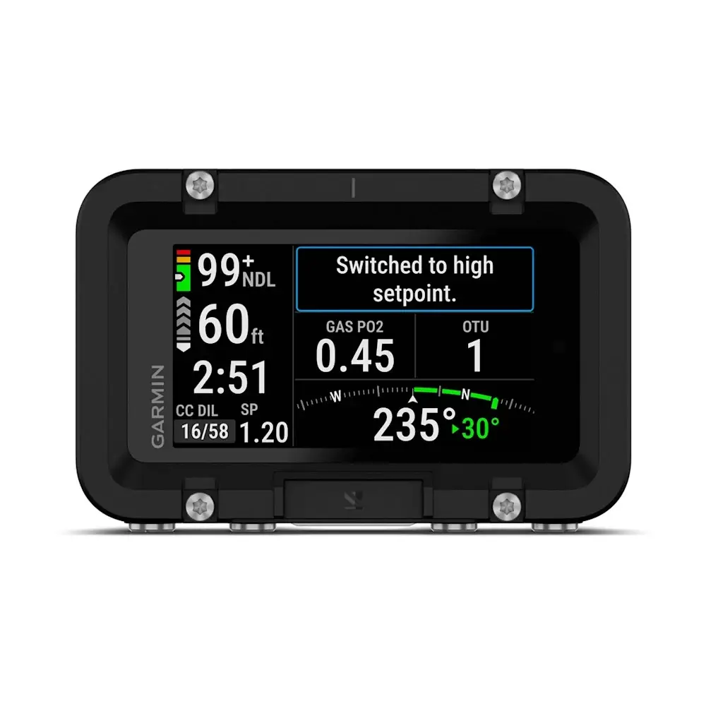 Büyük renkli ekran daha fazla verinin görünür olmasını sağlar ve tahmini tırmanış dalış profili ve dalış içi derinlik çizelgesi gibi kritik bilgileri tek bakışta kolayca okunabilir hale getirir. Ve dokunmatik ekran yüzeyin üstünde1 kurulumu kolaylaştırır.